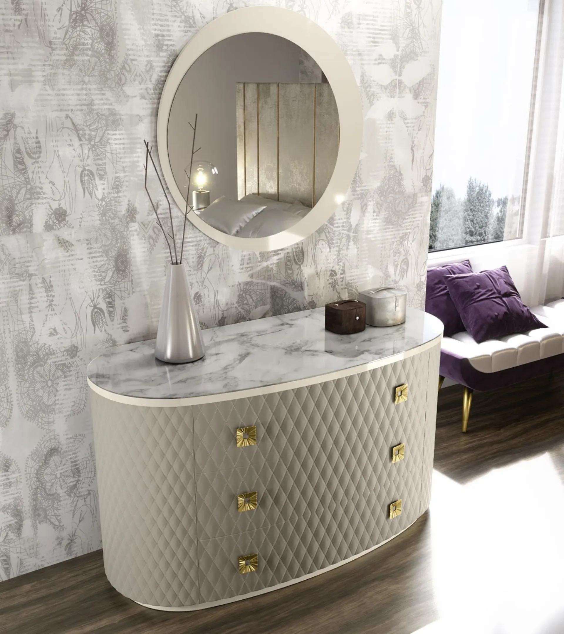 Nel nostro punto vendita potrai vedere dal vivo la qualità dei modelli di specchi moderni in laccato del brand, proprio come questa soluzione in foto. Le composizioni arredative di grande valore estetico del brand Adriatica valorizzano l'habitat con i loro colori e stile, ricreando particolari atmosfere arredative. Complementi e specchi completano l'arredo di casa, riempiendo lo spazio in modo utile e rendendolo assai funzionale e di grande valore estetico. Altamente versatili e multifunzionali, i Complementi moderni in laccato rispondono a funzioni diverse: ultimano le qualità pratiche e il valore estetico dell'ambiente. Specchiera Meraviglia di Adriatica in laccato: conferirà personalità e charme a un interno arredato con mobili e complementi dai richiami moderni.