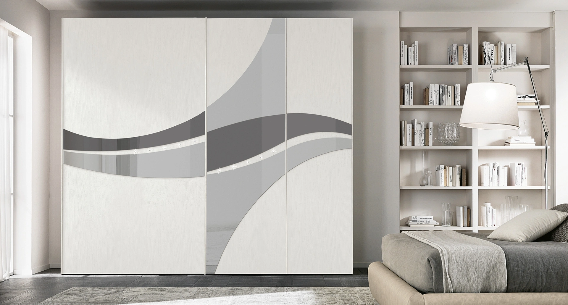 Per arredare al meglio una stanza bella e di grande qualità, scegli le più esclusive soluzioni dei migliori brand, letti, armadi e comò di grande design. Contattaci e scopri di più sulla nostra collezione di Arredamento Casa: sarai in grado di completare la camera da letto usufruendo di una diversificata offerta di contenitori moderni, come l'armadio in legno nell'immagine. Gli Armadi a muro con ante scorrevoli sono componenti immancabili in camera, per renderla arredata con gusto, pratica e completa di tutto.