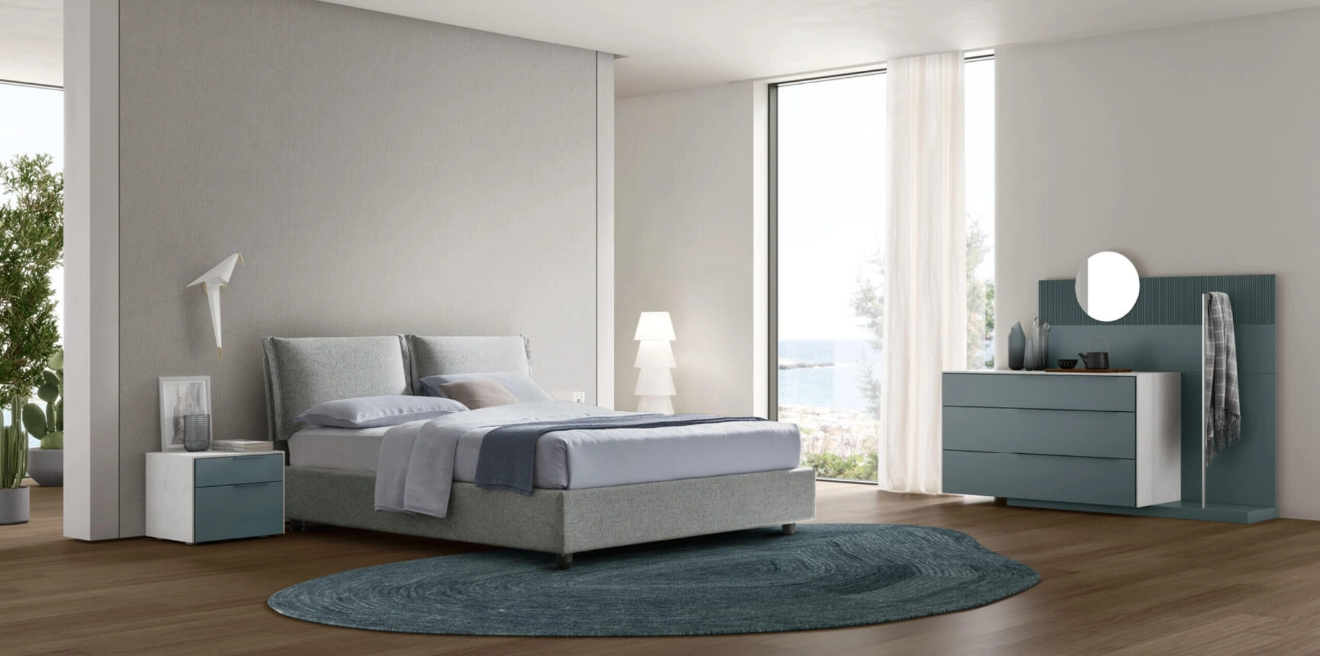 Durante la scelta di un buon modello di letto, valuta attentamente le sue misure, le finiture, la forma e il suo stile rispetto ai restanti pezzi d'arredo. Scegli cromie e texture e realizza il tuo concept d’arredo nella camera da letto, progettandola proprio come l'avevi sognata. Se desideri una soluzione in tessuto, il modello presente in foto è connotato da materiali durevoli e forme decise, che invitano a passare un sonno profondo e ristoratore. I Letti matrimoniali con contenitore del marchio, specialista nella produzione di Arredamento Casa per la zona del riposo, vengono progettati per essere abbinati a mobili ed elementi accessori di ogni tipo, come armadi e comò, lampade e piantane.